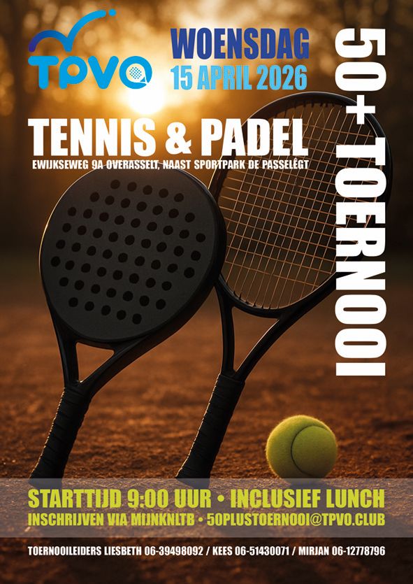- Tennis: HD, DD en GD in 6, 7 en 8: inschrijven via deze link.